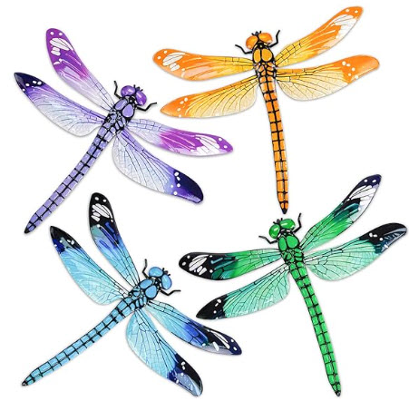 4 Pack Large Metal Dragonfly Wall Decor